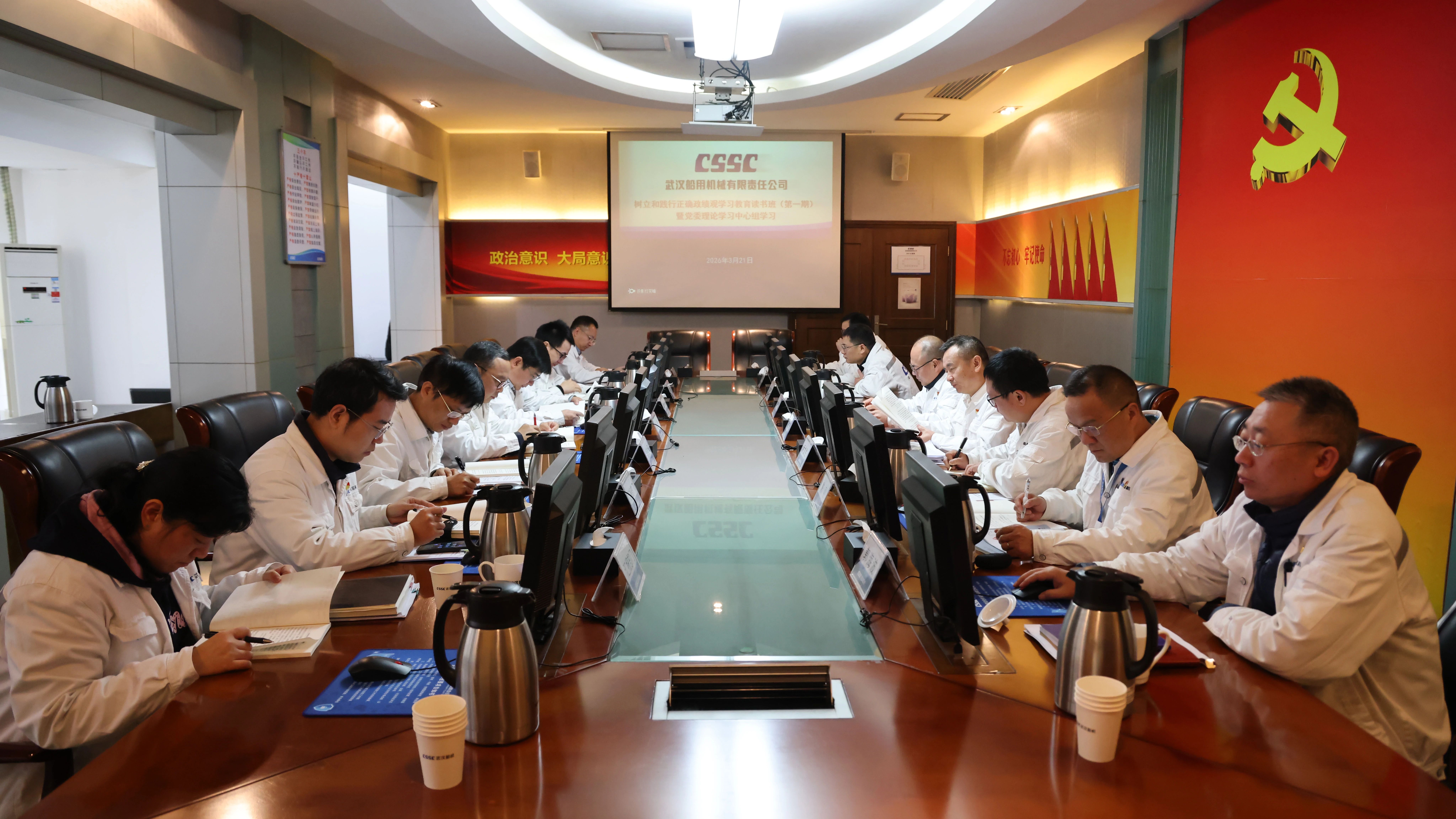 3月21日,中船武漢船機(jī)黨委開(kāi)展樹(shù)立和踐行正確政績(jī)觀學(xué)習(xí)教育讀書(shū)班(第一期)暨黨委理論學(xué)習(xí)中心組學(xué)習(xí)會(huì)議。公司黨委理論學(xué)習(xí)中心組成員參加學(xué)習(xí)研討,總經(jīng)理助理、學(xué)習(xí)教育工作專(zhuān)班成員列席,公司黨委副書(shū)記、總經(jīng)理程立兵主持讀書(shū)班并領(lǐng)學(xué)。